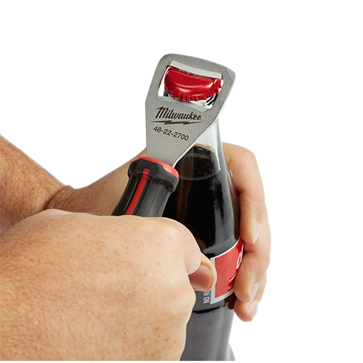 El abridor de botellas Milwaukee® está diseñado para uso intensivo dentro y fuera del lugar de trabajo con un cabezal duradero de acero endurecido. El abridor de botellas también cuenta con protección contra el óxido de acero cromado para usar en ambientes húmedos y mojados, el diseño de tres lóbulos de Milwaukee® y una marca en la tapa trasera para una fácil identificación.